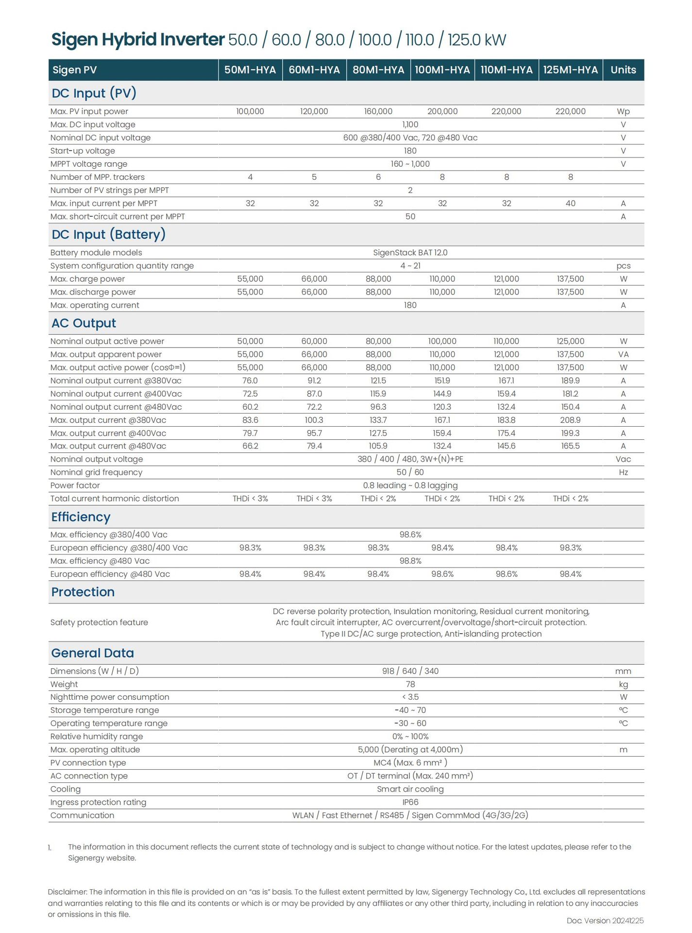 Sigen Hybrid Inverter 110.0 kW M1 Version