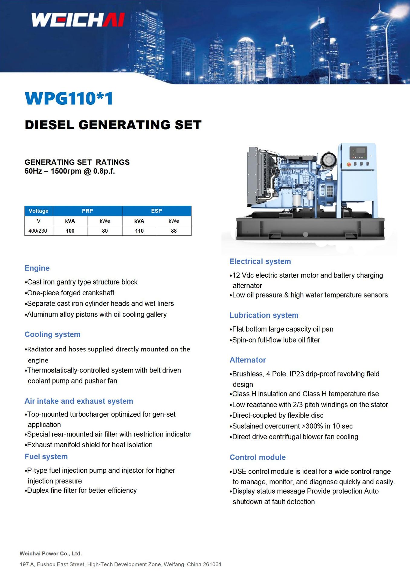 WPG110L1 Silence DIESEL GENERATING SET 250L Fuel capacity, LEROY-SOMER ALTERNATOR