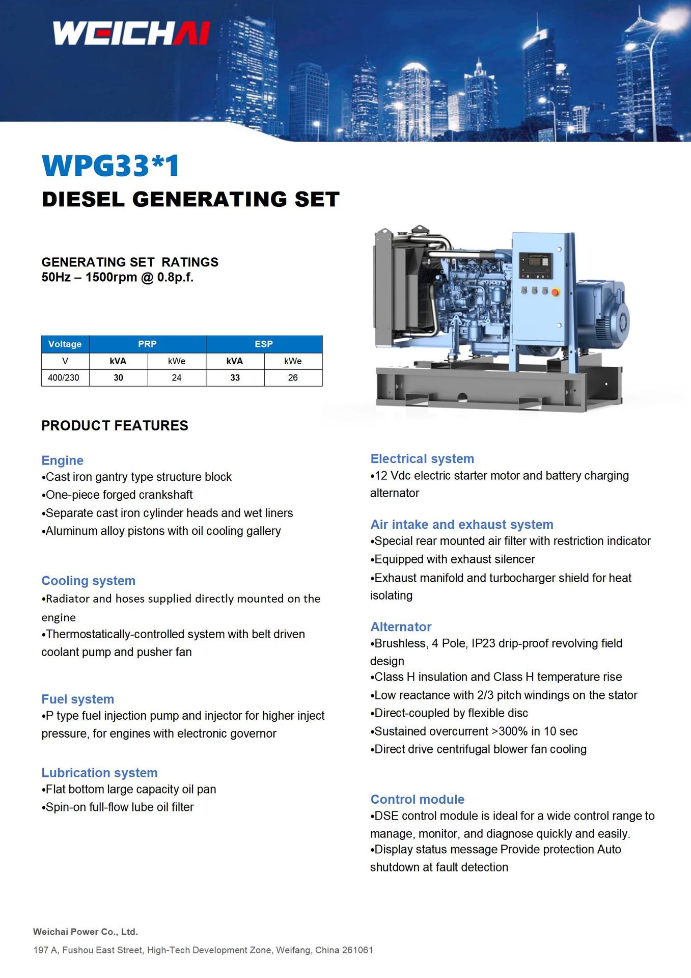 WPG33L1 Silence DIESEL GENERATING SET 50L Fuel capacity, LEROY-SOMER ALTERNATOR