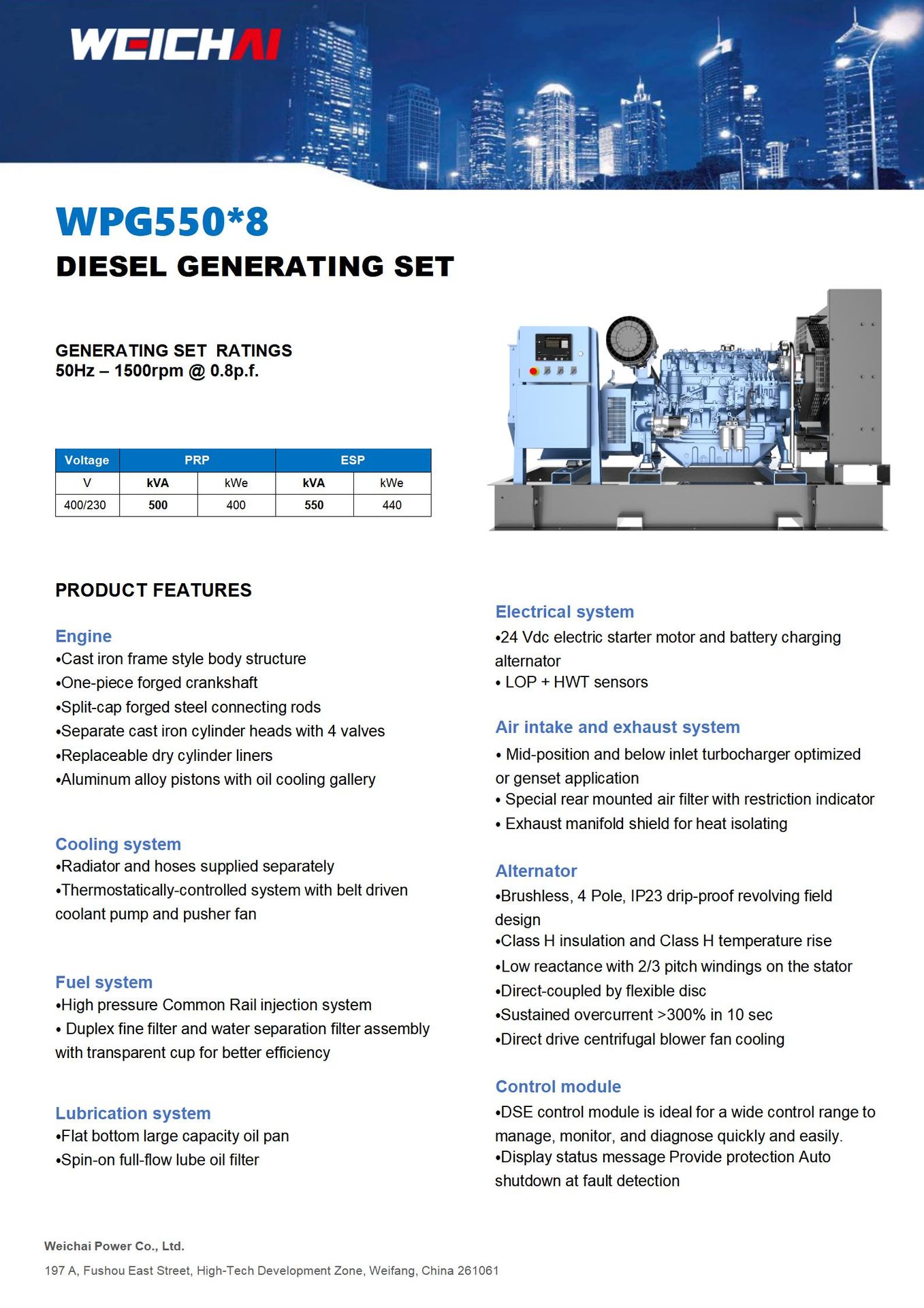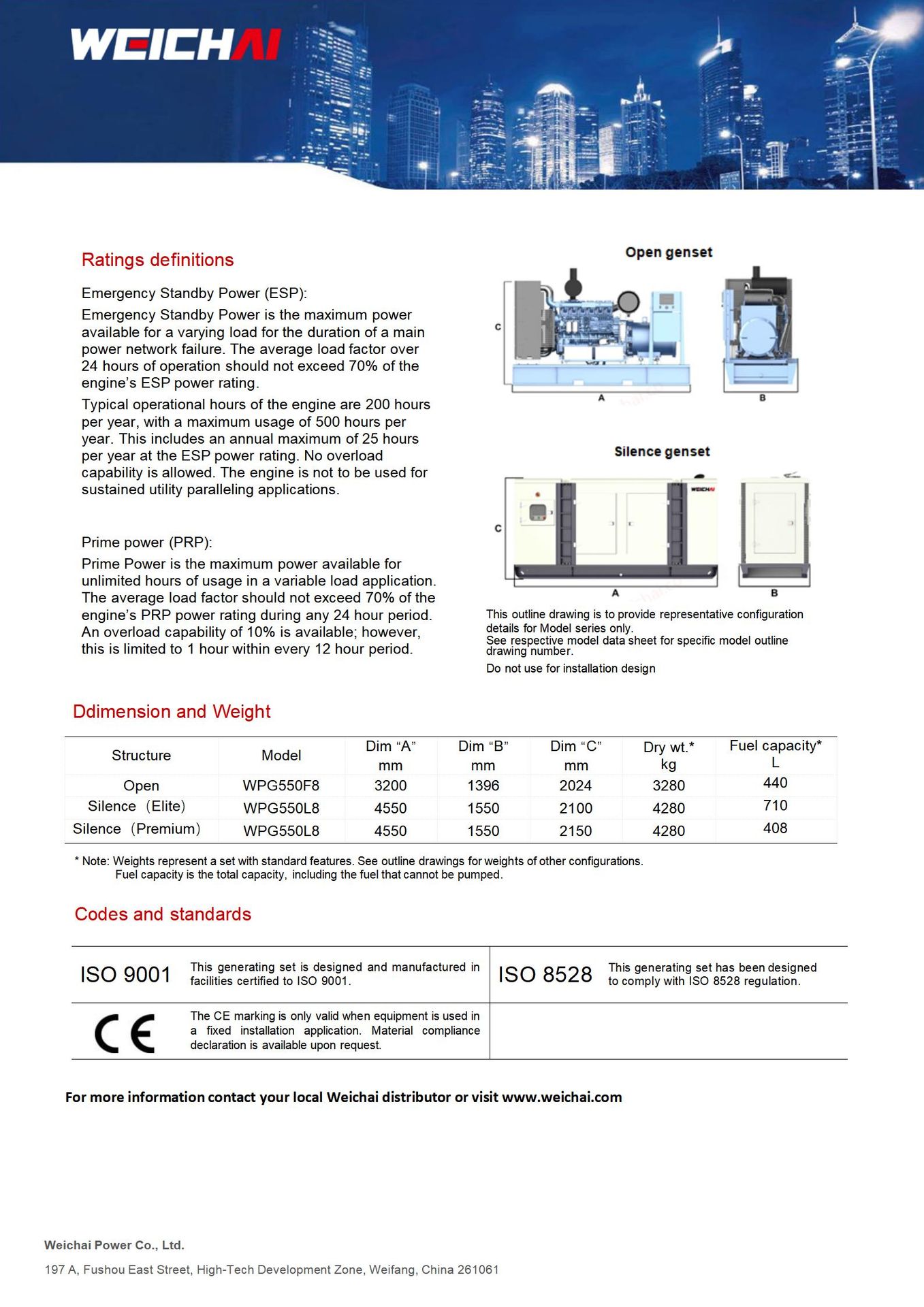 WPG550L8 Silence DIESEL GENERATING SET 710L Fuel capacity, LEROY-SOMER ALTERNATOR